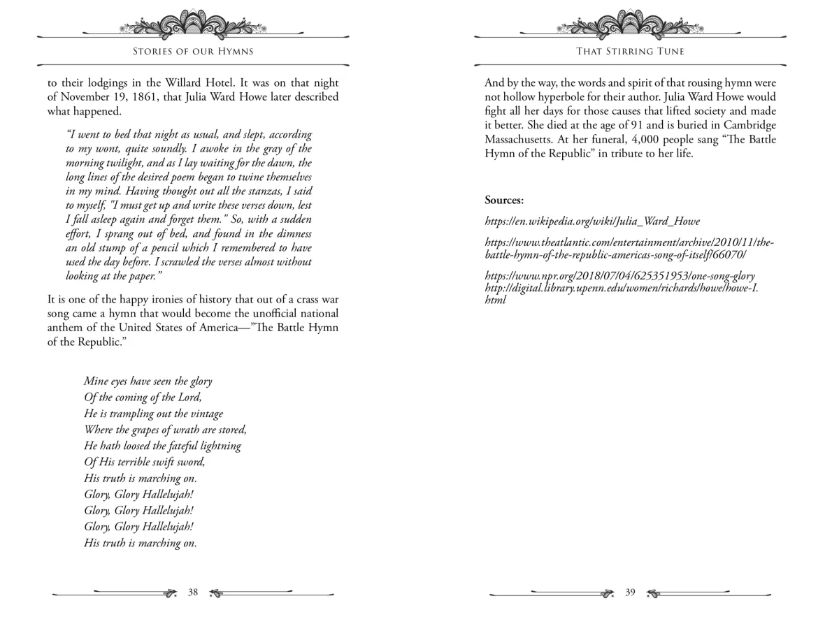 Have you ever wondered about the circumstances and origin stories for the hymns Amazing Grace, Nearer My God to Thee, Abide With Me, Battle Hymn of the Republic, Come Thou Fount of Every Blessing, America the Beautiful and many others?
